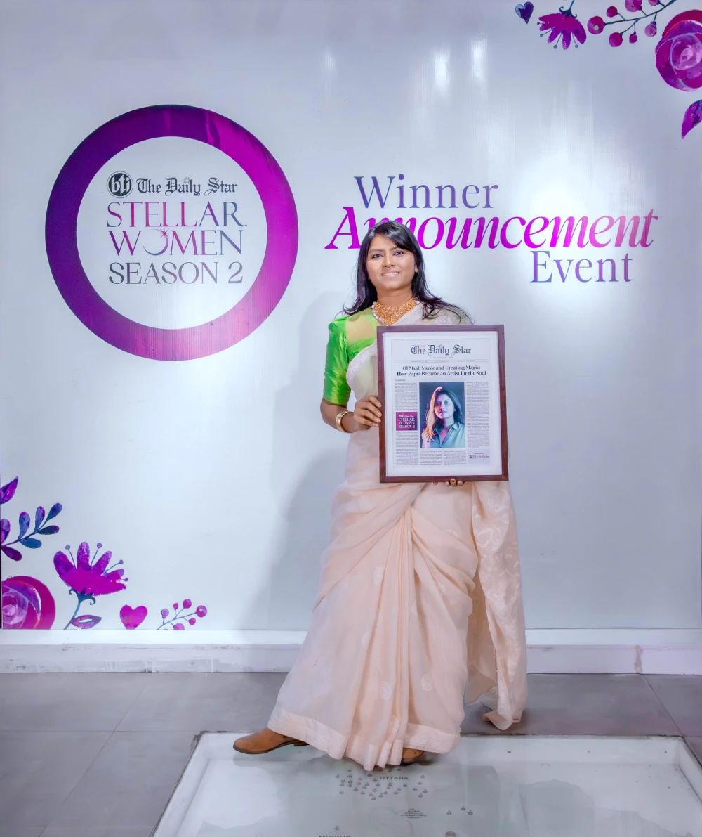 Since childhood, Papia had always been attuned to her surroundings, especially to nature. Her upbringing in a culture-forward family allowed her to explore her interests, particularly in Art. Even though she decided to become an architect by profession, she kept nurturing her interest in art, letting her heart pour out onto the blank canvas. Papia shares an architectural studio with her husband, which also doubles as a space for her artwork. What sets her art apart is the use of natural elements like sand, spices and soil to bring her paintings to life.